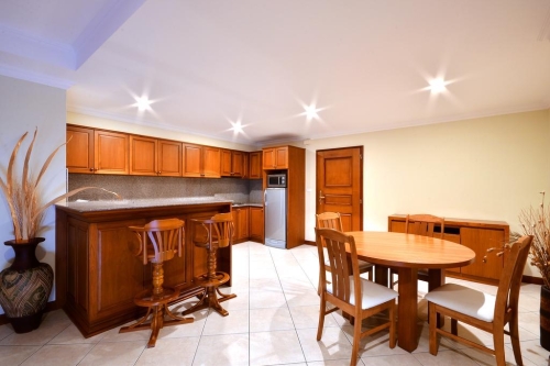 This apartment has a seating area, flat-screen TV, and stovetop.